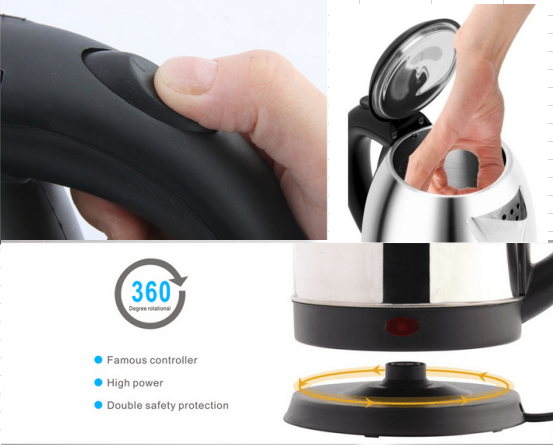 | | 1. stainless steel, plastic handle, looking elegant and practical electric kettle 2. Stainless steel heating base, high thermal efficiency 3. electric kettle with 360°rotation, easy to operate 4. Automatic switch off after water boiled, triple protection of dry-burn 5. High quality stainless steel material, Dull or shining for option 6. Sunlight,Changtai or Strix controller are available for electric kettle. | ||